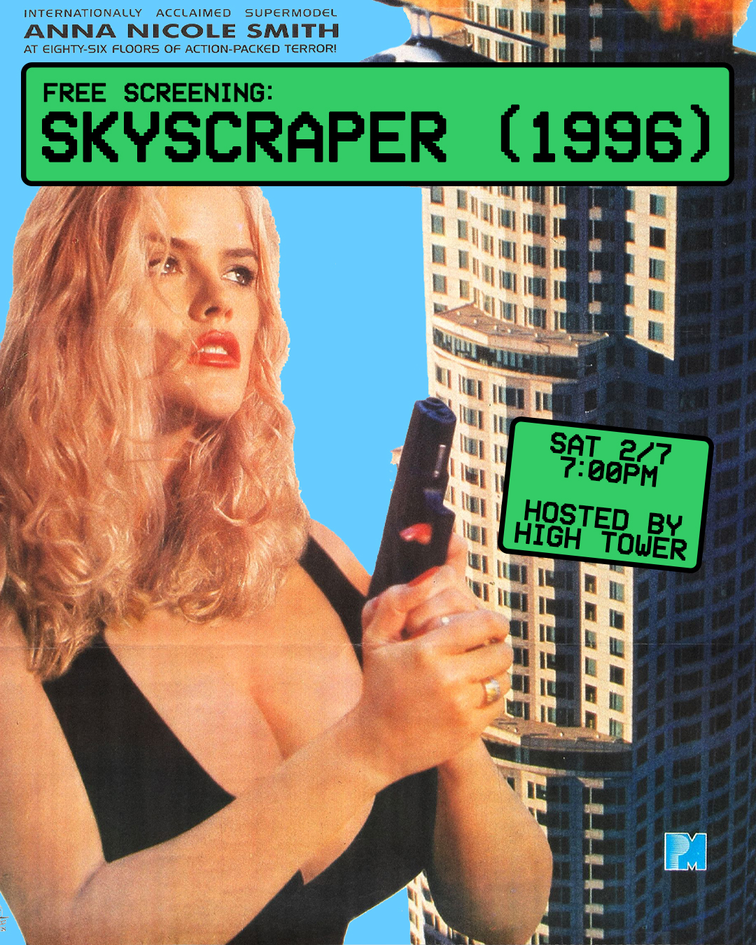 7:00PM: party-style screening of SKYSCRAPER (1996) on VHS, hosted by High Tower Video (rated R)